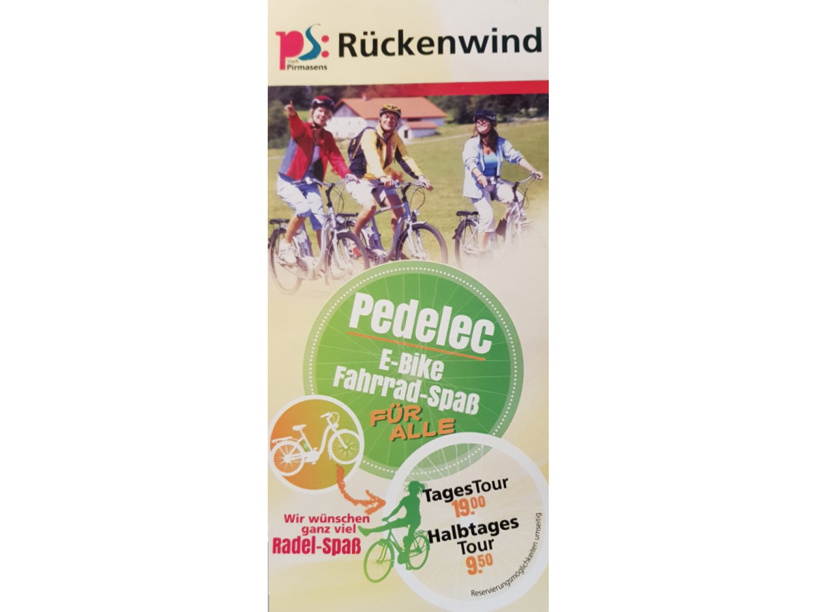Die Pedelecs können in der Touristinfo im Rheinberger, Fröhnstr. 8, 66954 Pirmasens ausgeliehen werden. Reservieren Sie sich Ihr Pedelec unter Tel. 06331/2394321 oder per Mail tourismus@pirmasens.de