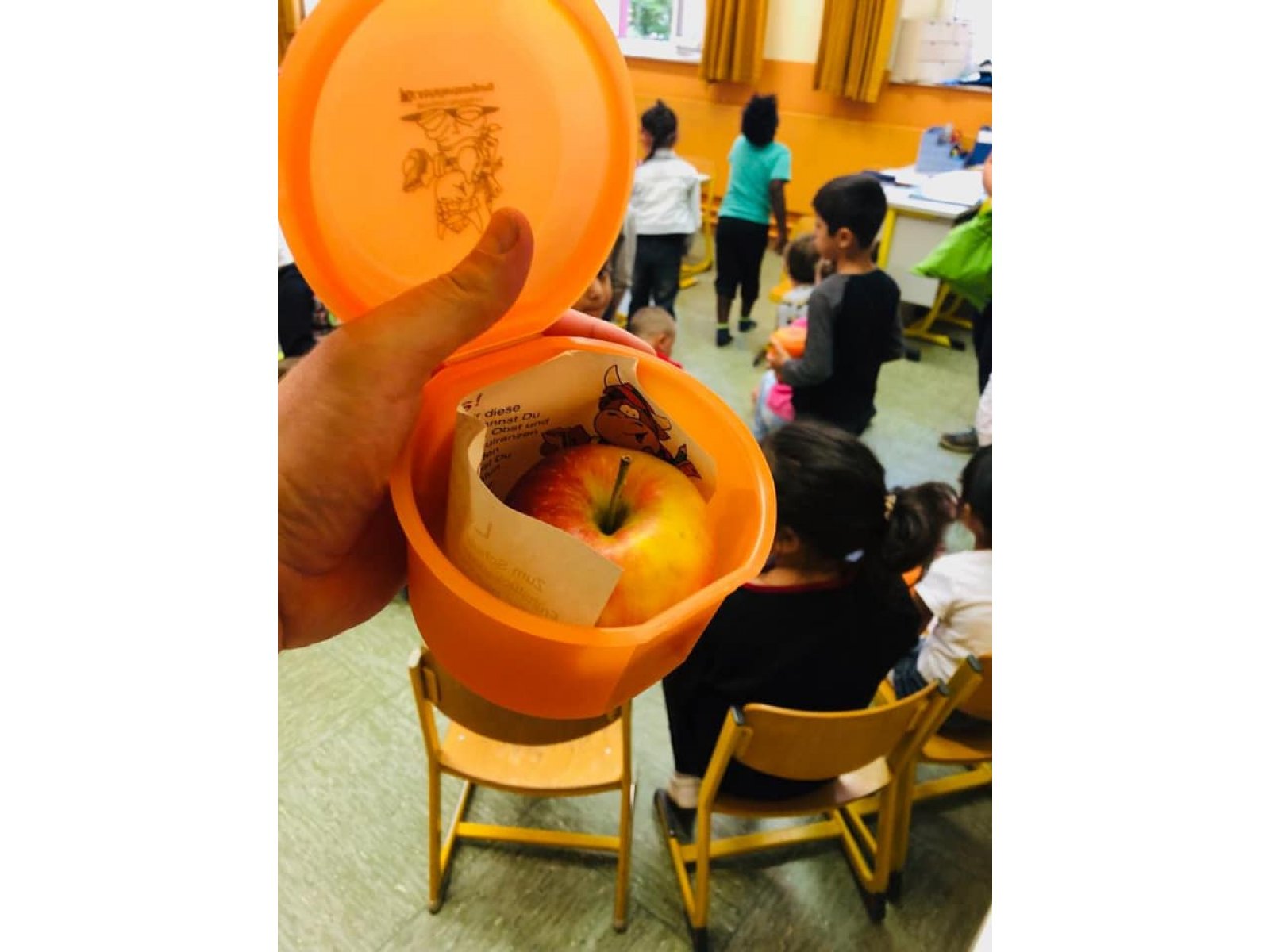 Zur Belohnung erhielten die Kinder zum Abschluss eine tolle Brotdose mit einem lustigen Pilou von uns geschenkt! Claas Maennel von der WASGAU AG schenkte den Kindern dazu noch einen leckeren und gesunden Apfel! Eine tolle Aktion, bei der bereits unsere Kleinen mithelfen können, mit Spaß die Umwelt zu schützen! Allen Beteiligten herzlichen Dank fürs Mitmachen! ðŸ‘ðŸ»