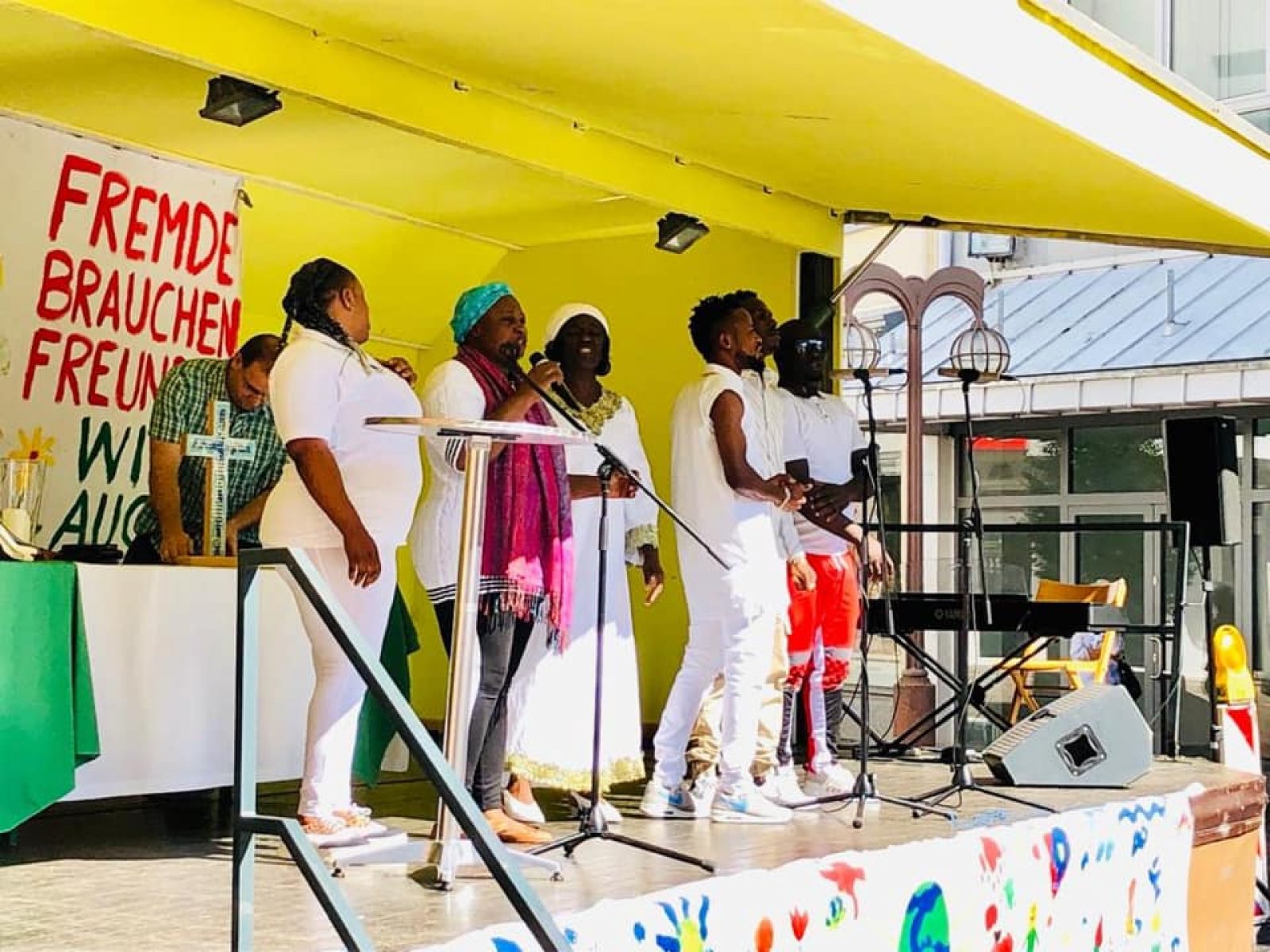 In diesem Jahr fand das Freundschaftsfest rund um den Schusterbrunnen und die Lutherkirche statt! Mitten im Herzen unserer Stadt war dies ein idealer Ort für das Fest, denn im „Schusterbrunnenquartier“ ist neuerdings sehr viel los, seit sich die Anwohner, Geschäftsleute und Hauseigentümer für eine lebendige Fußgängerzone engagieren! Und gerade dort treffen Menschen aus verschiedenen Kulturen alltäglich aufeinander! 👥