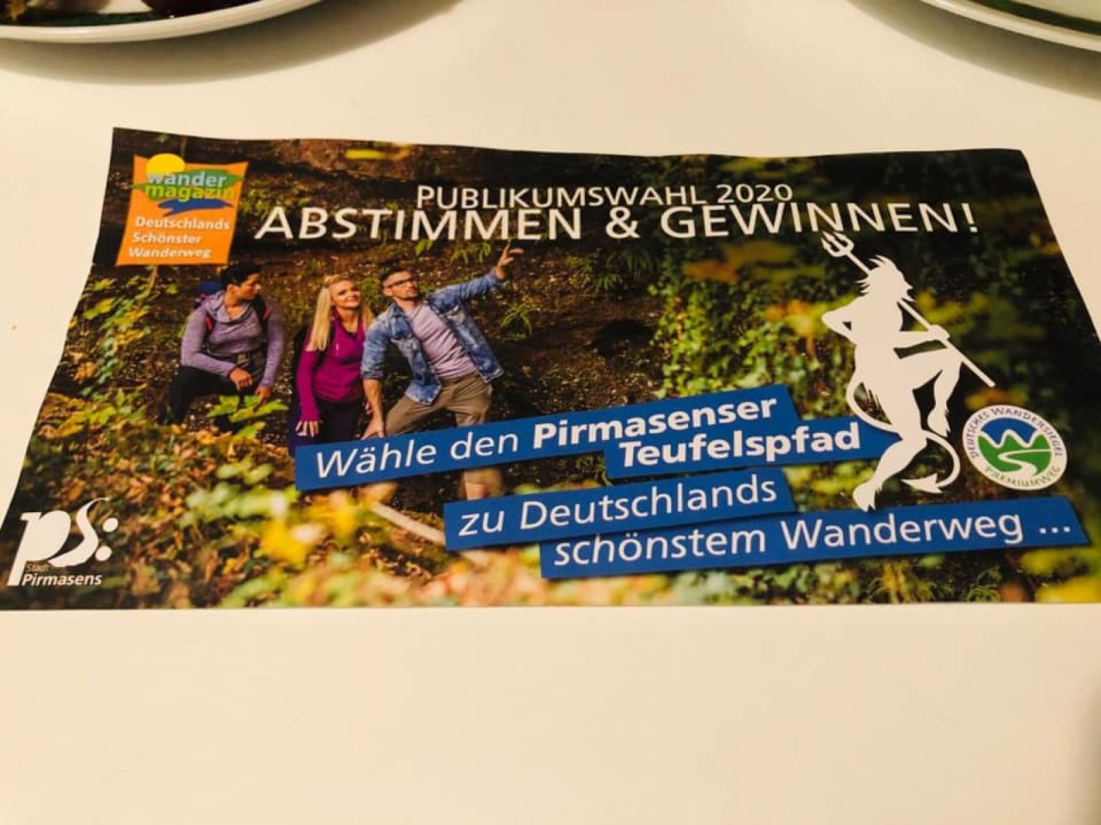 Jetzt ist Ihre Mithilfe gefragt: Sie und Ihre Freunde können für den „Teufelspfad“ abstimmen! Über Deutschlands schönsten Pfad entscheidet nämlich das Publikum. Bis zum 30.6.2020 können wir daher für unseren Teufelspfad abstimmen. Entweder online unter https://wandermagazin.de/wahlstudio . Oder schriftlich per Abstimmungskarte! Die Karten erhalten sie z. B. an der Info in unserem Rathaus, im Bürger-Service-Center oder im Tourismus-Büro! ðŸ“