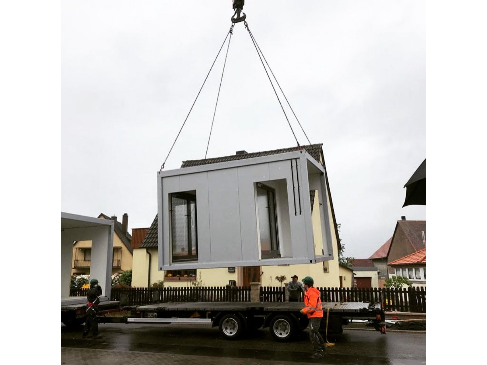 Wo gestern noch ein leerer Platz war, steht heute schon ein Kindergarten! Das Gebäude wurde aus passgenauen Modulen errichtet, die mit Lastwägen angeliefert und mit einem Schwerkran aufgestellt wurden! Viele Windsberger haben deshalb nicht schlecht gestaunt, dass der Kindergarten in nur einem Tag errichtet wurde! ðŸ—