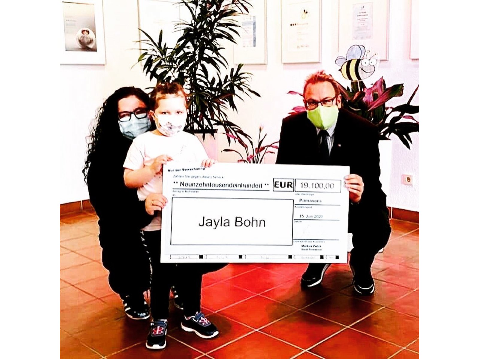 Heute hatte ich die Ehre, der Mutter von Jayla den Scheck über 19.100,- € überreichen zu dürfen. Julia Bohn war extra mit Jayla ins Pirmasenser Rathaus gekommen, worüber ich mich riesig gefreut habe. Jayla konnte als Erinnerung auch noch einen Kuscheltier-„Pilou“ mit nach Hause nehmen!
