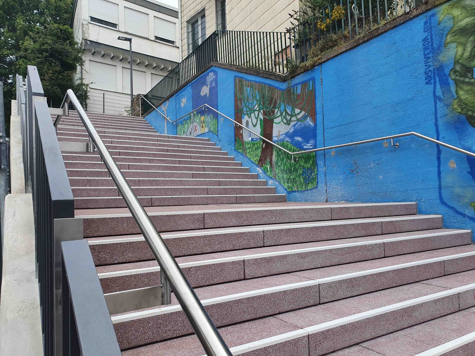 Die Generalsanierung des Treppenbauwerks erfolgte im Rahmen des aktuellen Straßenausbauprogramms. Die Kosten in Höhe von rund 350 000 Euro werden über Wiederkehrende Beiträge und städtische Mittel beglichen.