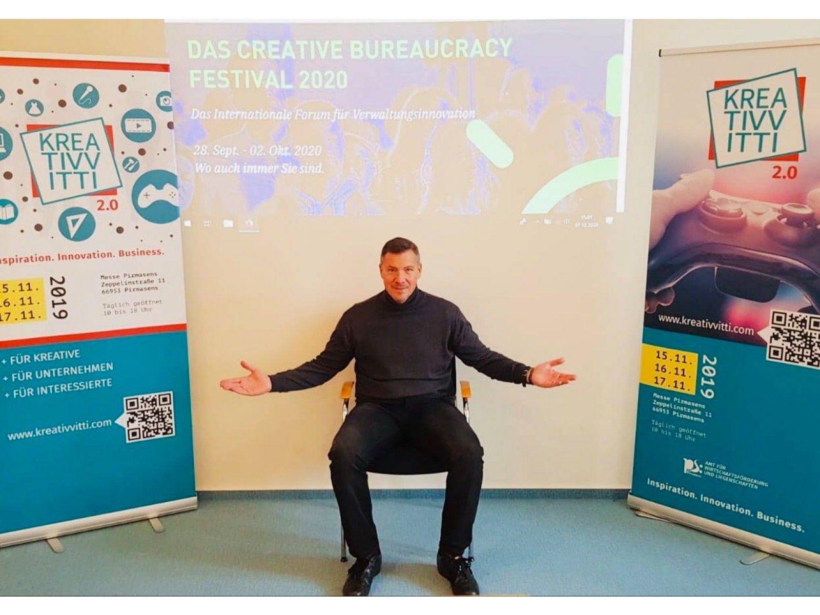 Kein Wunder also, dass unser dynamischer und kreativer Wirtschaftsförderer Mark Schlick von der Jury des diesjährigen „Creative Bureauczy Festival“ als Vorbild für kreative Bürokratie ausgewählt wurde! Pirmasens und die „KREATIVVITTI“ waren so neben Lissabon, London und Berlin im europaweiten Fokus fortschrittlicher Verwaltungen! 😲