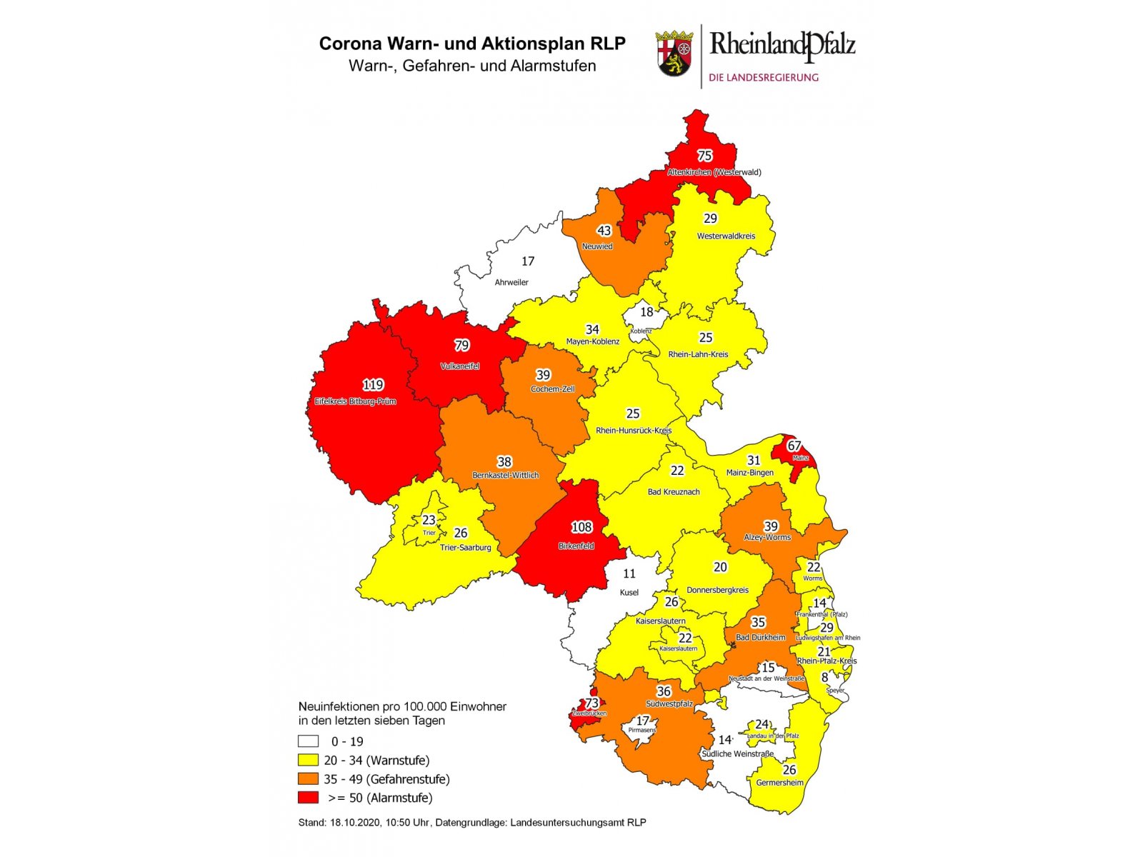 Das Landesuntersuchungsamt meldet für Zweibrücken heute einen Inzidenzwert von 73, für den Landkreis von 36! Pirmasens steht bei 17 und damit auch nur knapp unter der „Warnstufe gelb“!