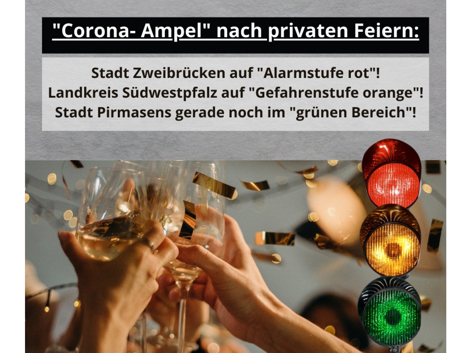 An diesem Wochenende hat es auch die Südwestpfalz erwischt: Seit Sonntag befindet sich unsere Nachbarstadt Zweibrücken auf „Alarmstufe rot“! Und der Landkreis Südwestpfalz auf „Gefahrenstufe orange“!