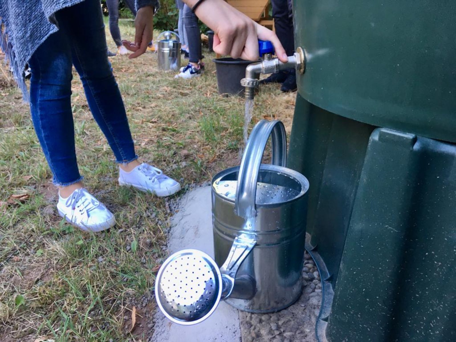 Der Clou daran: die Kinder baten die Stadt, Regenwasser vom Schuldach für die Bewässerung auffangen zu dürfen! Diese tolle Idee ließen wir uns nicht nehmen und installierten zwei Regenwasser- Sammelbehälter! Seitdem sparen die Kinder beim regelmäßigen Gießen Geld und kostbares Trinkwasser!💦