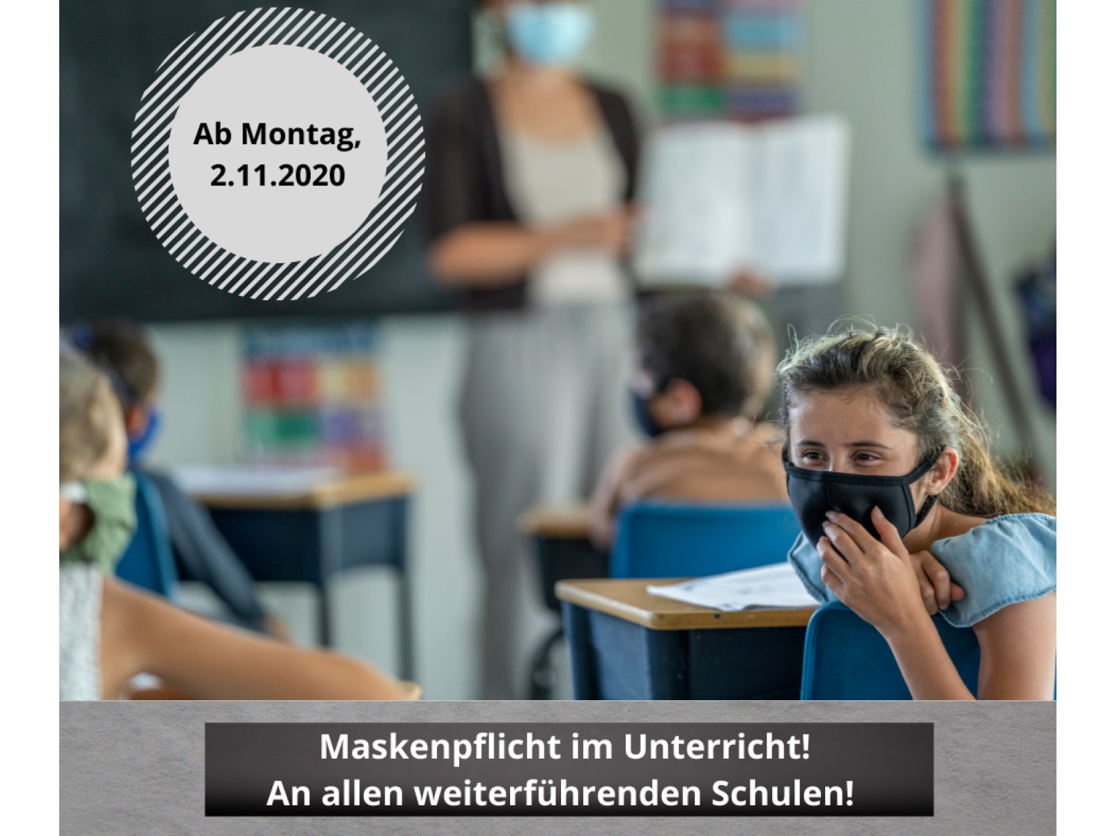 Das Land hat heute im Landtag angekündigt, ab Montag eine landesweite Maskenpflicht im Unterricht an allen weiterführenden Schulen einzuführen!