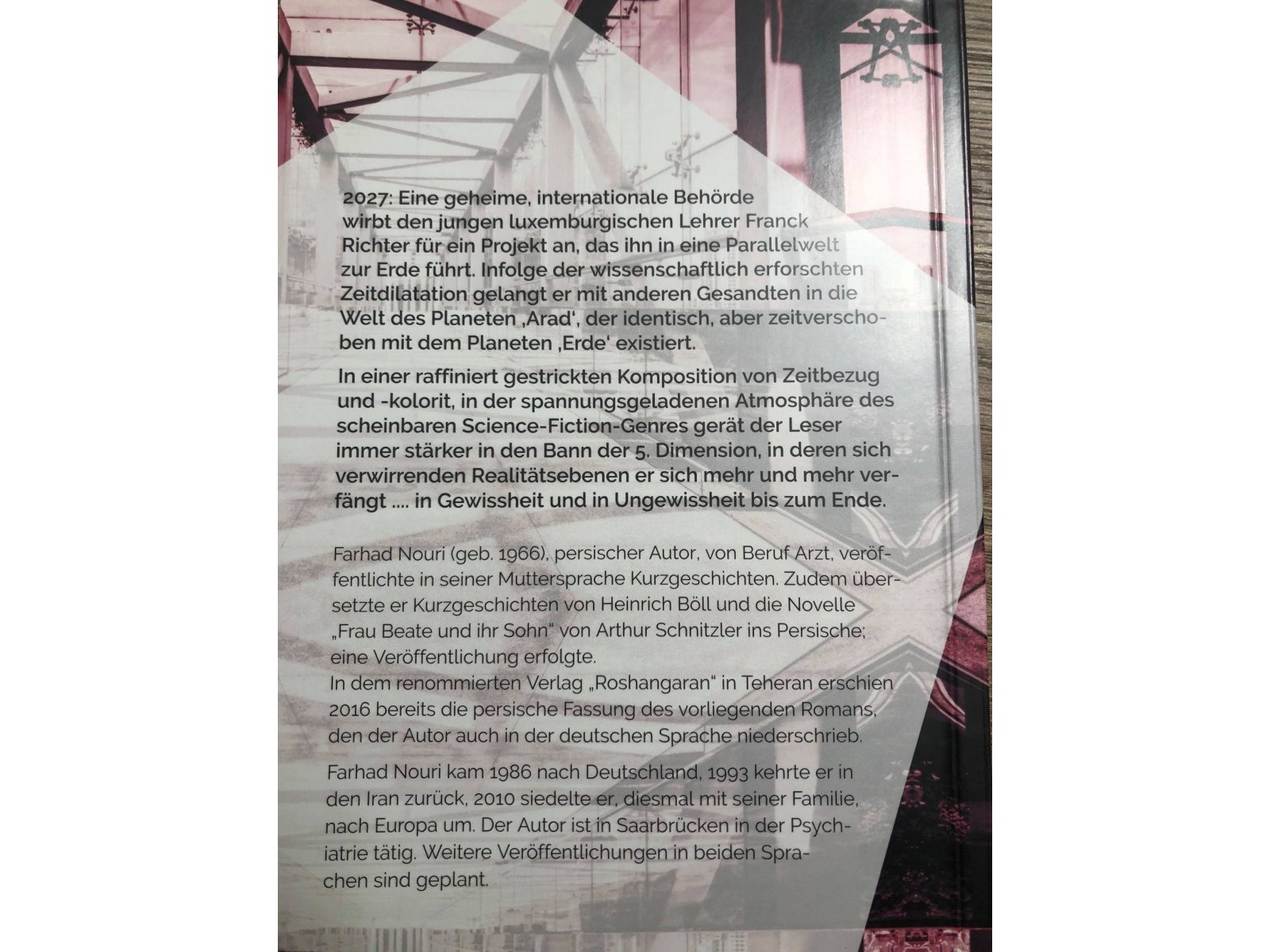 Durch einen Zeitungsbericht von Tanja Daub von der Rheinpfalz wurde ich kürzlich darauf aufmerksam, dass Herr Dr. Nouri nicht nur ein erfahrender Arzt ist, sondern auch ein sehr begabter Schriftsteller! Er hat nämlich einen spannenden Science- Fiction- Roman geschrieben: „Die 5. Dimension – vor der Vergangenheit“!